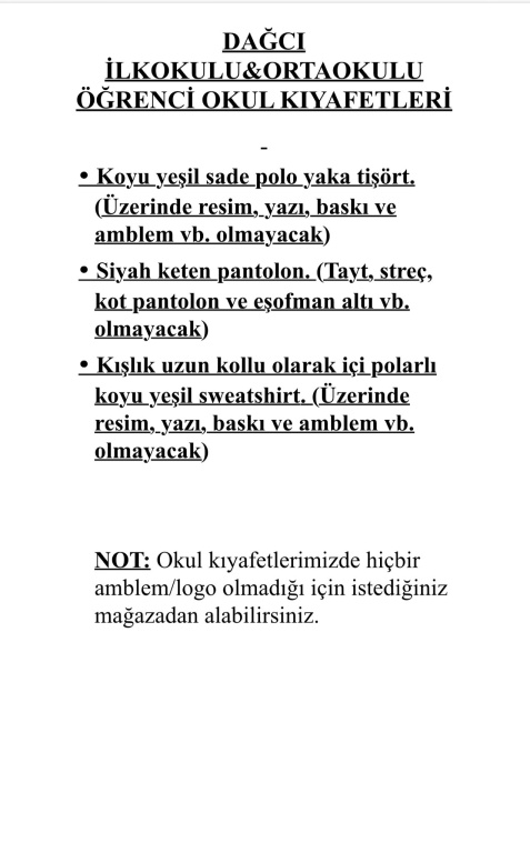 Geçmiş eğitim öğretim yılında kullanılan önünde logo baskısı bulunan kıyafetler de bu yıl kullanılmaya devam edecektir.